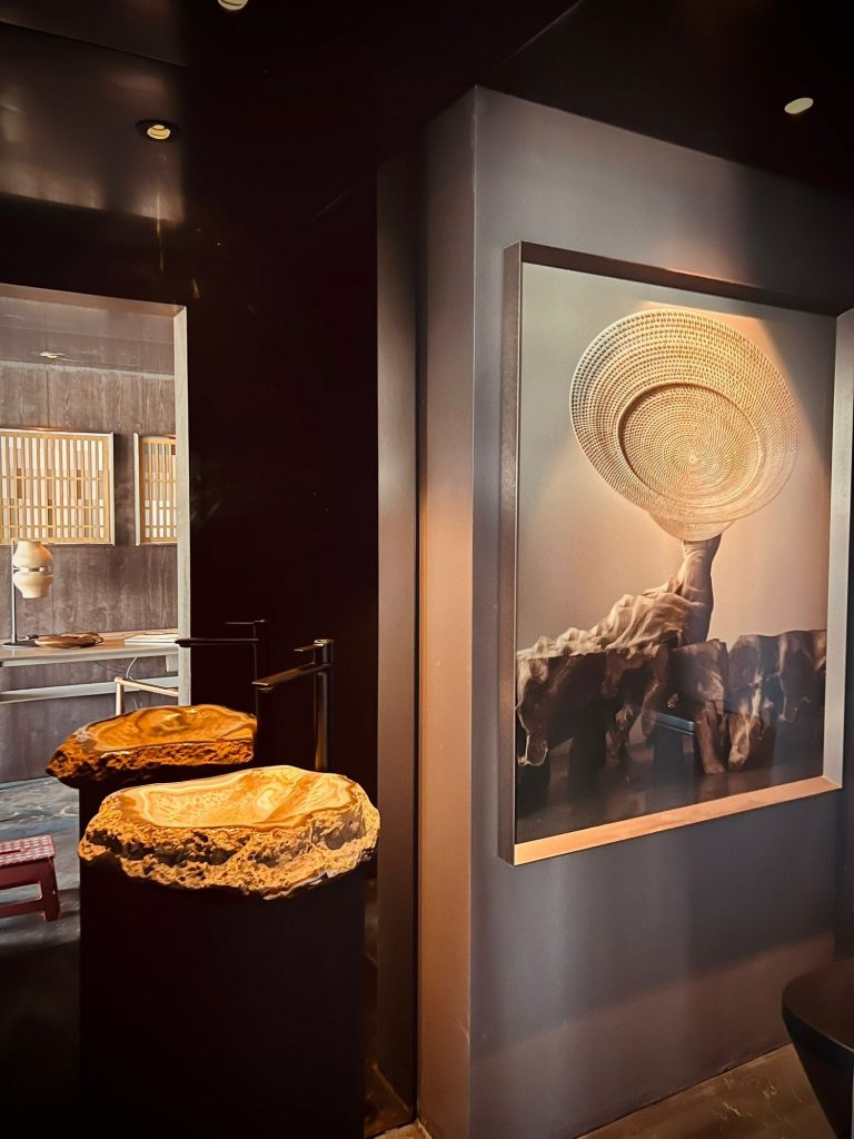El diseñador Gustavo Bono combina una visión contemporánea global con sus raíces latinoamericanas, uniendo funcionalidad, elegancia y confort emocional de quien habita ese espacio, mezclando piezas con historia, acabados ricos y colores cuidados, priorizando la experiencia por encima de la moda pasajera. Respecto al premio de mejor aplicación en piedra, comentó que utilizó la piedra cristalis en particular porque tiene mucho cuarzo y permite la traslucidez, cambiando de color de acuerdo a la luz del día.