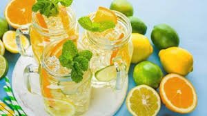 Colocar cuatro tazas de agua fría en un recipiente de vidrio, colocar una naranja en gajos, añadir frutillas partidas a la mitad y hojas de menta. Colocar hielo a gusto. Sano, fresco y delicioso.