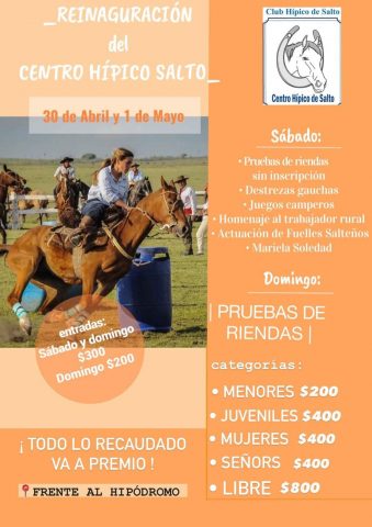 En abril de 1994 dio inicio a sus actividades, como una iniciativa familiar, en un enclave estratégico para este tipo de acciones, frente al Hipódromo de Salto, en un entorno de mucha naturaleza, en una zona de chacras y establecimientos de cría y entrenamiento de caballos. Se acondicionaron las instalaciones, desarrollando una infraestructura inicial de importantes dimensiones y mucha comodidad para los usuarios. Algunas de las actividades realizadas: Escuela de equitación y salto de obstáculos, Pensionado de caballos, Escuela de equitación de campo, Competencias de Pruebas de Rienda, Fiestas criollas, jineteadas, ruedo de vacunos y demás destrezas camperas. El presente año se realizó un relanzamiento a partir de una renovación en los referentes del Club, se proyectan nuevos desafíos a partir de una concepción actualizada y aplicada de la gestión. Esto incluirá aspectos que se desarrollan a continuación, pero que tiene su centro en la organización permanente de actividades y atención dedicada y altamente profesional del público y de los equinos. En ese sentido, el reinicio será el próximo viernes 30 de abril con una serie de actividades: pruebas de rienda sin inscripción previa, destrezas gauchas, juegos camperos y se realizará un homenaje al trabajador rural. En tanto el sábado de noche música en vivo con la actuación de Fuelles Salteños y Mariela Soledad.
